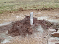 Before laying in the floor beams for the second floor, the garage framing was done and the sheathing put on. The early morning chill prompted a nice fire from scrap wood – we just needed some marshmallows to complete the effect.